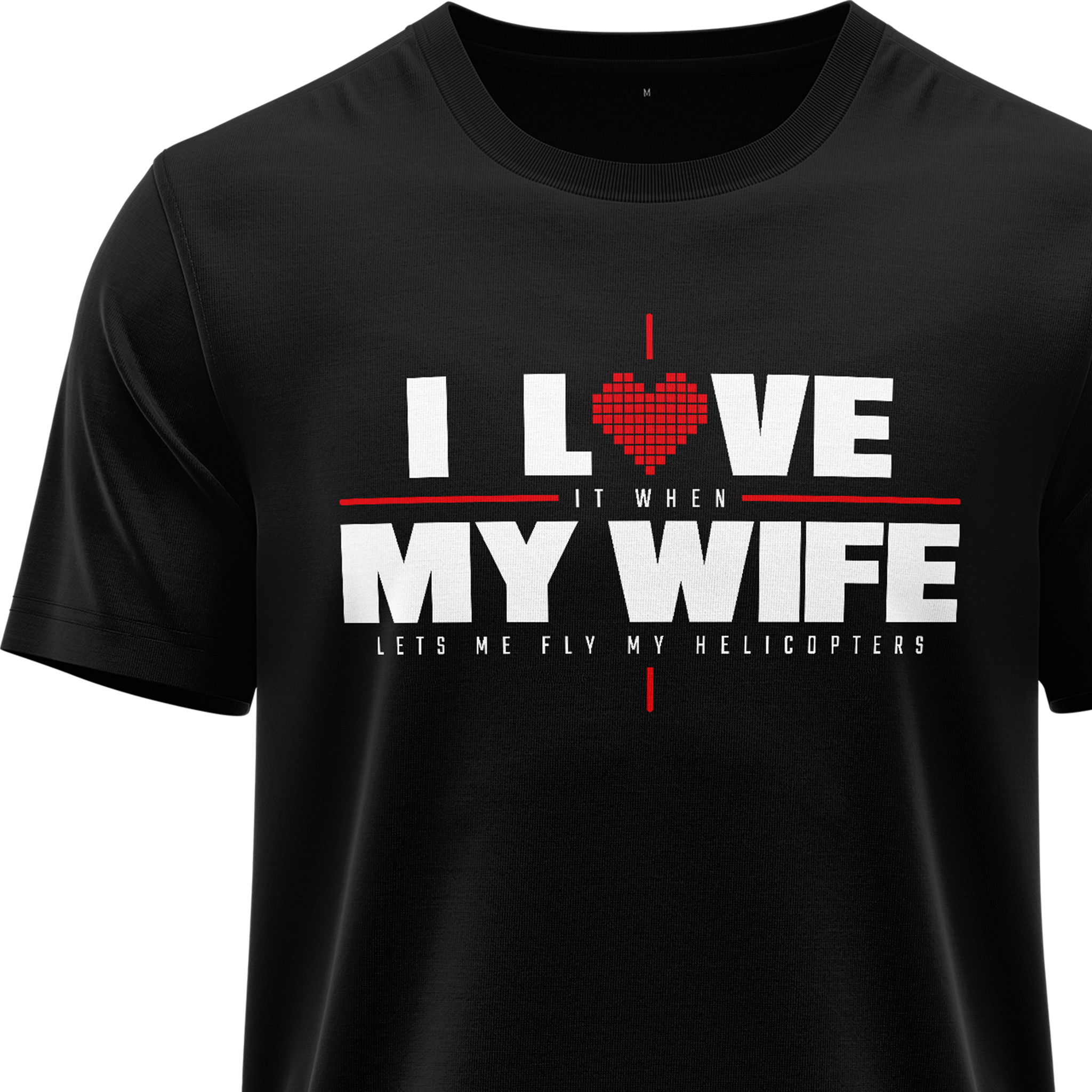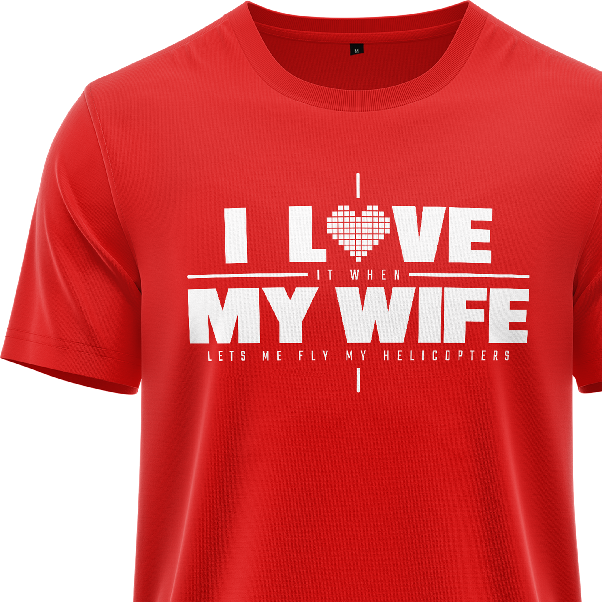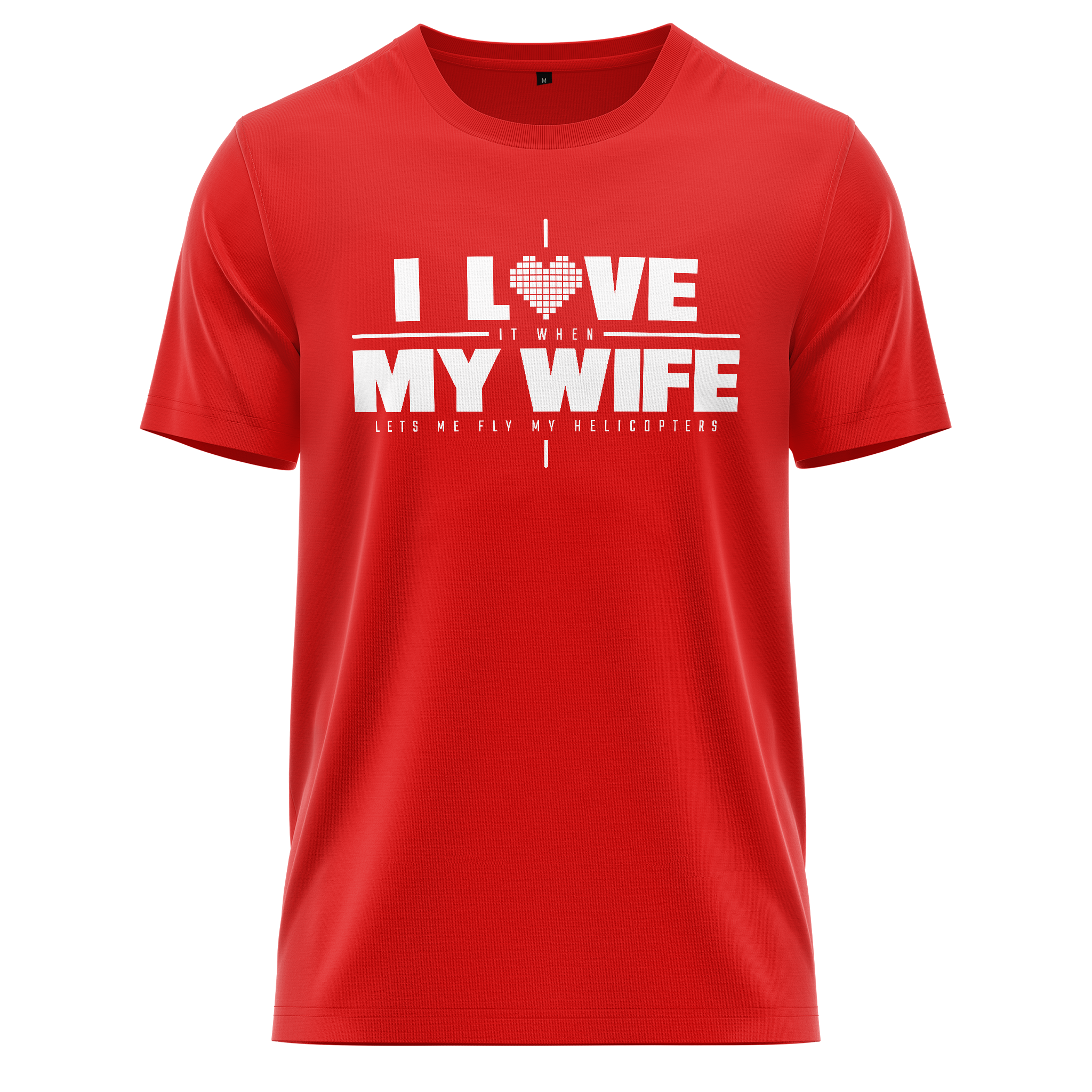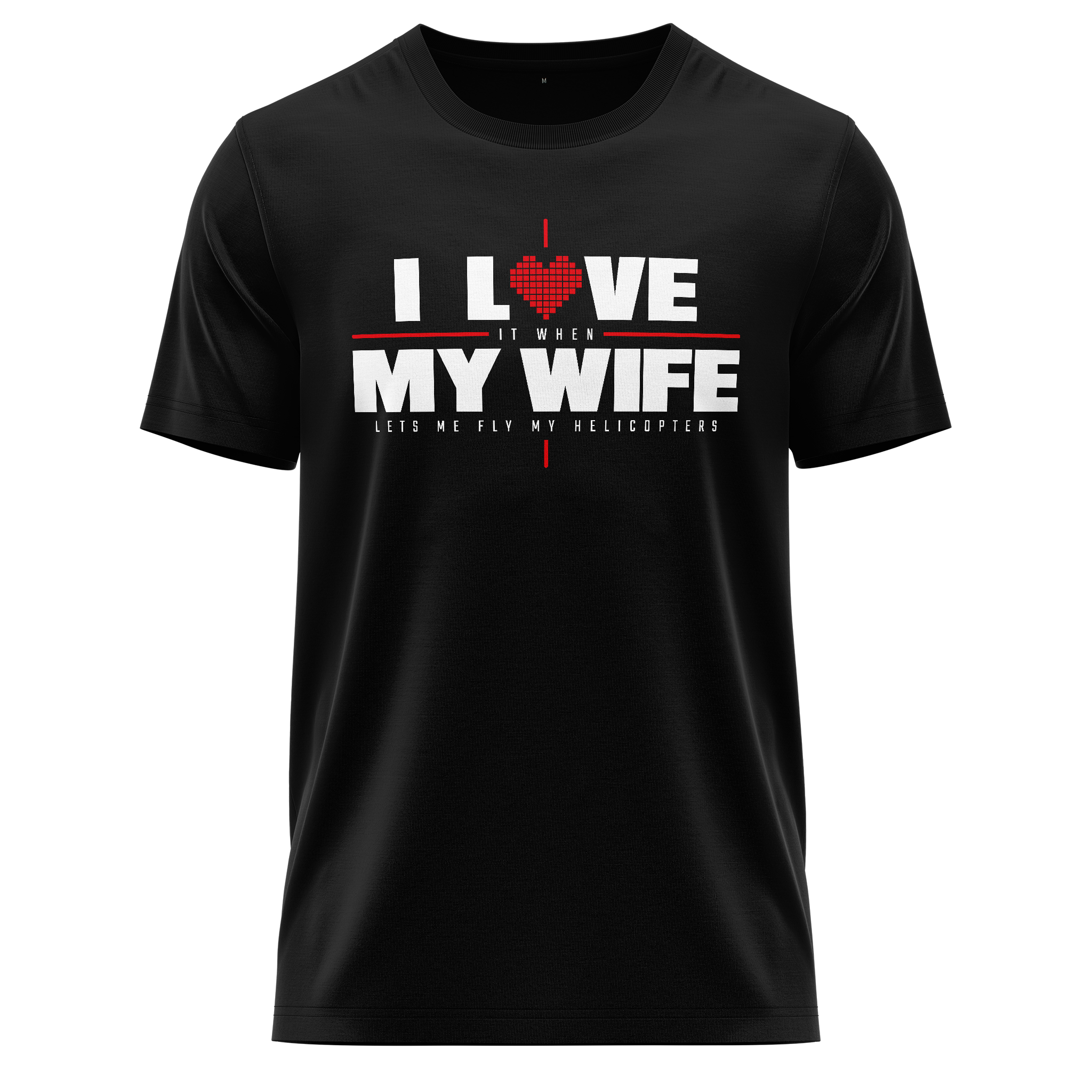 Zeige deine Liebe - zu deiner Frau - UND deinem RC Heli-Hobby ;). Dieses T-Shirt mit dem Spruch "I love (it when) my wife (lets me fly helicopters)" vereint höchsten Tragekomfort mit langlebiger Qualität. Hergestellt aus 100% reiner Baumwolle und mit einer hohen Stoffstärke von 200 g/m² bietet es dir einen weichen und zugleich schweren Stoff, der durch seinen langen Schnitt perfekt sitzt. Der langlebige Druck bleibt auch bei häufiger Beanspruchung beständig, sodass dieses Shirt auf dem Track und auch im Alltag in Form bleibt.